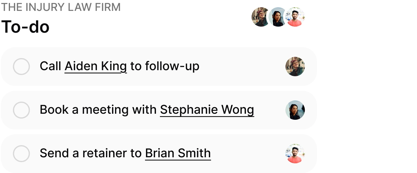 Track every lead clearly from first contact to signed client without switching tools.